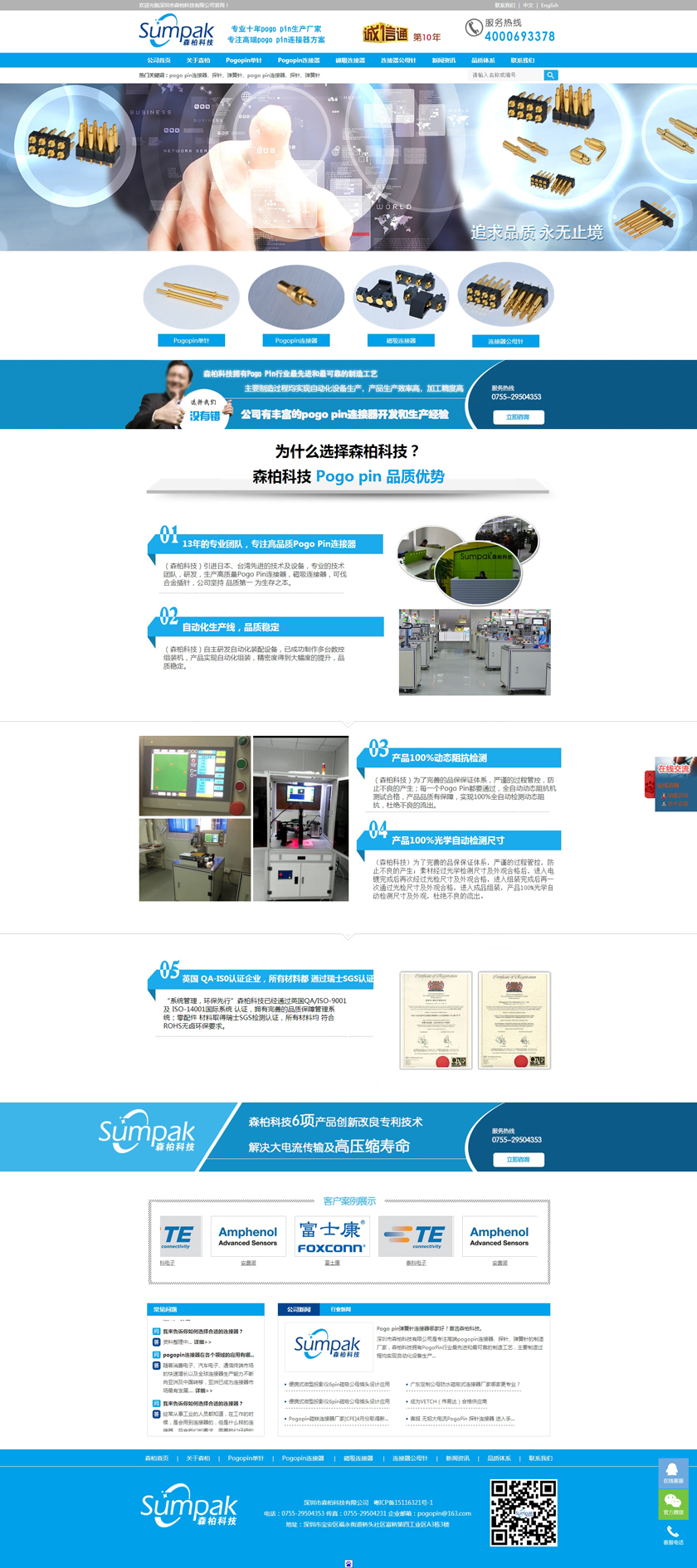 Project Description 深圳市森柏科技有限公司是专注高端pogo pin连接器、探针、弹簧针的制造厂家,森柏科技拥有Pogo Pin行业最先进和最可靠的制造工艺,主要制造过程均实现自动化设备生产,产品生产效率高,加工精度高,重要检测过程均采用自动化快速识别系统,大大降低了人为操作失误的风险,极大的提升了检测效率,工艺过程得到极大的改善和满足。因此产品质量和稳定性获得巨大突破。 Official website address 昆明http://www.zgsumpak.com I want to share